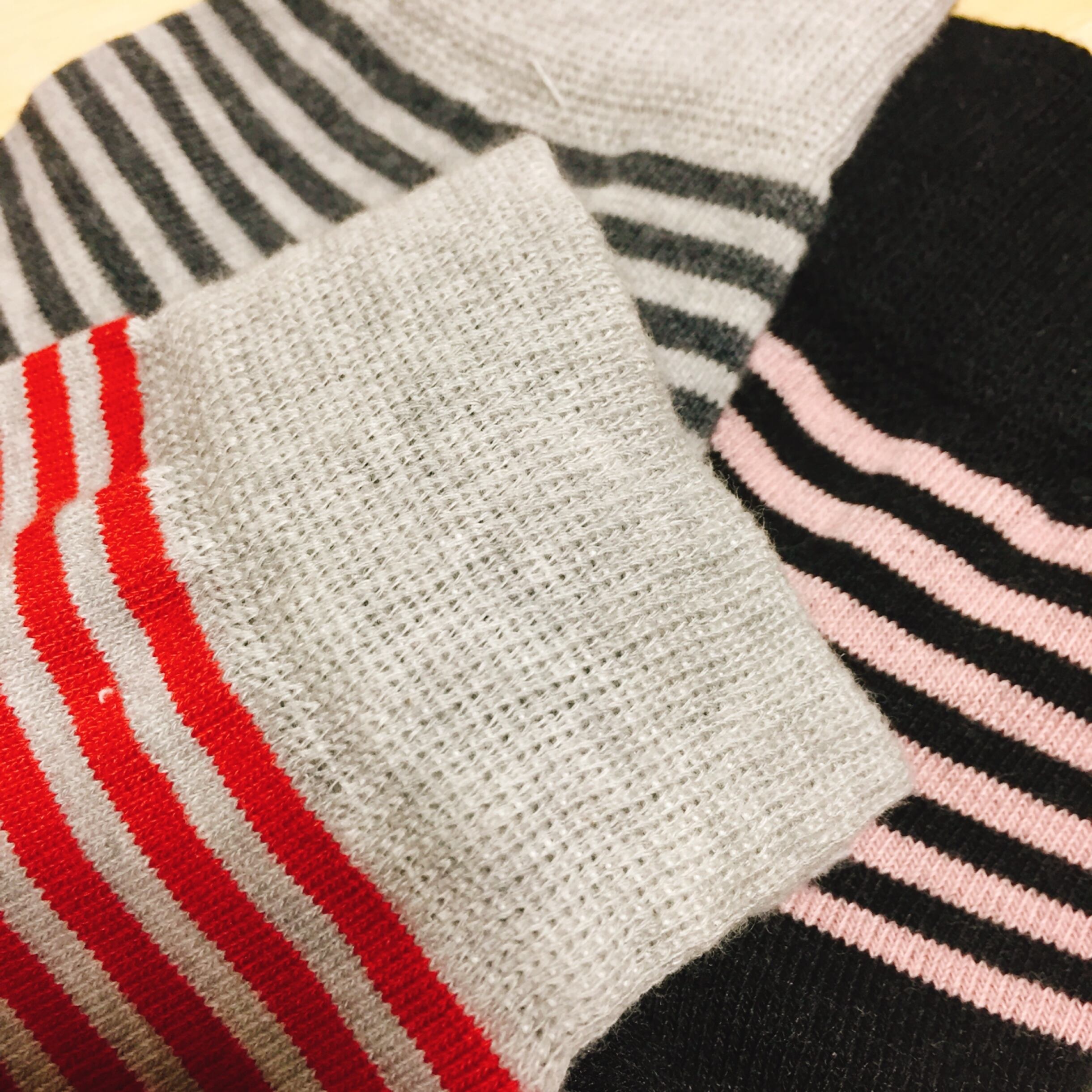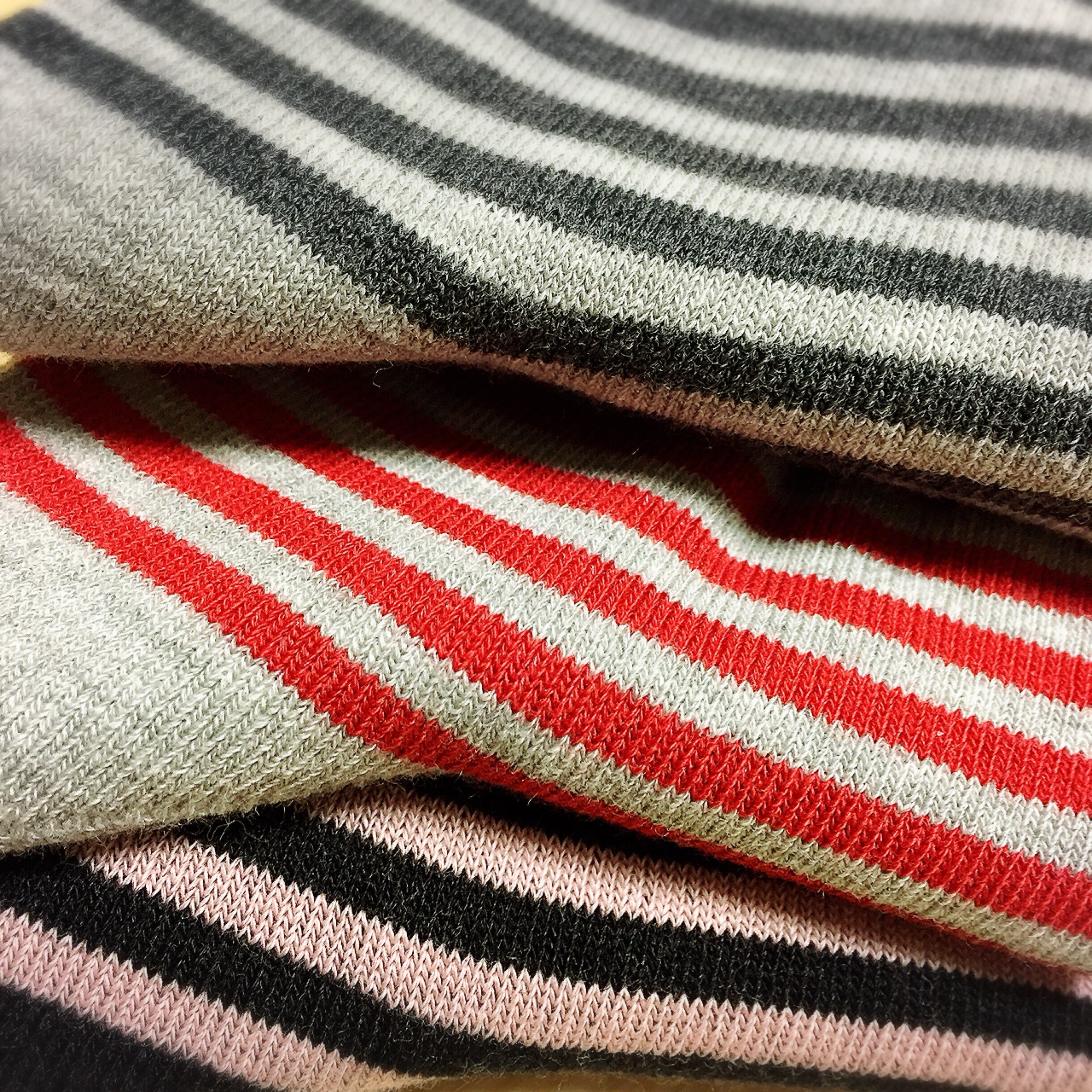 良質な超長綿を高温で燃焼させた炭の糸と綿の糸をミックスして編み込んだくるぶし丈のボーダーショートソックスです。