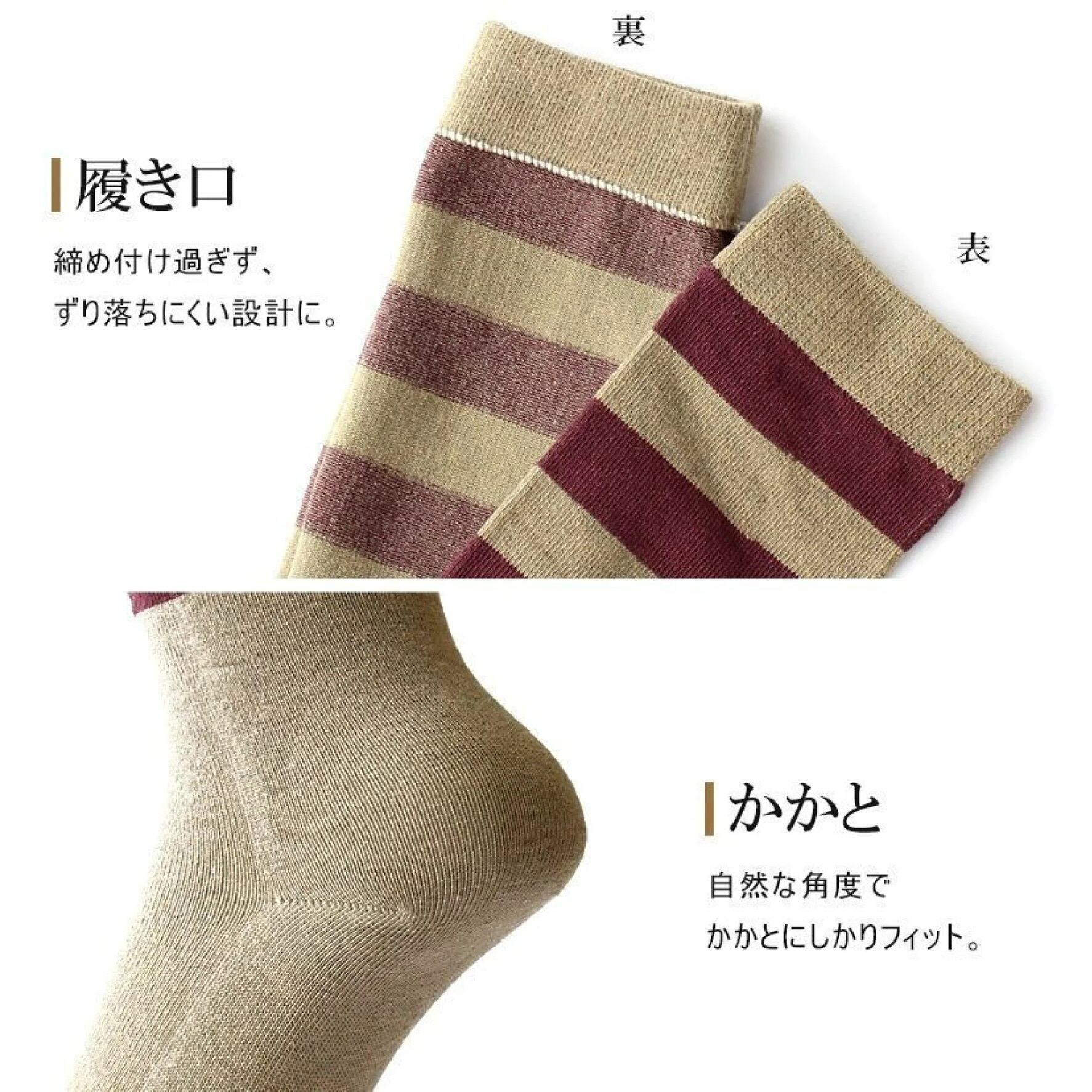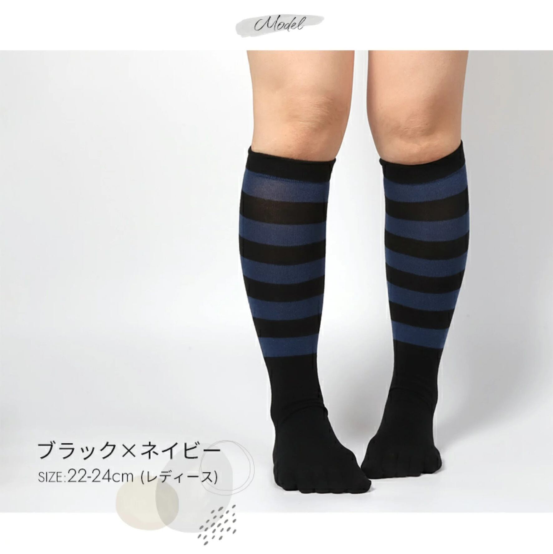 (送料無料/炭のチカラ/足の臭い軽減や血流促進に)綿由来の天然炭素繊維を靴下の産地奈良県の工場で編んだ五本指ボーダーソックス