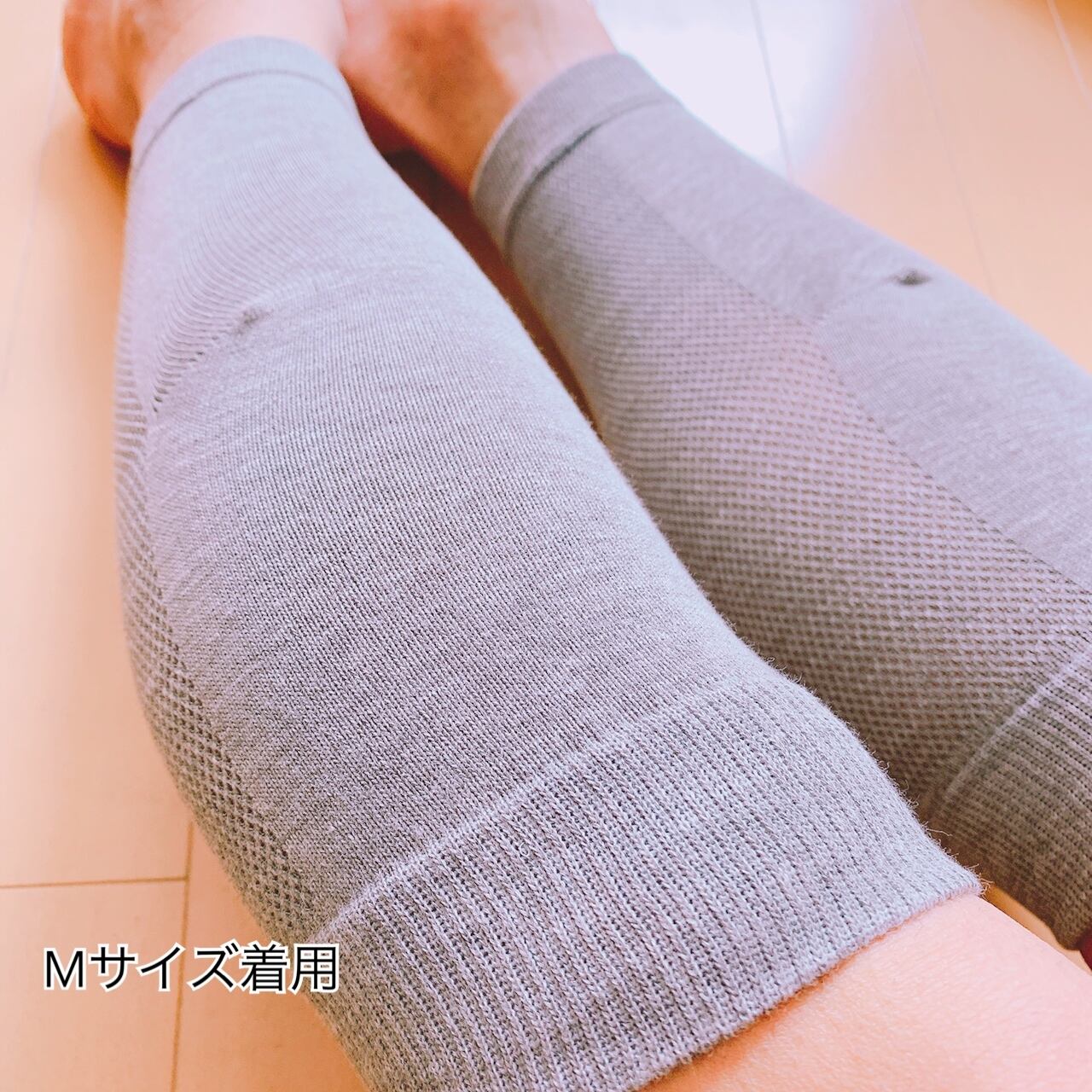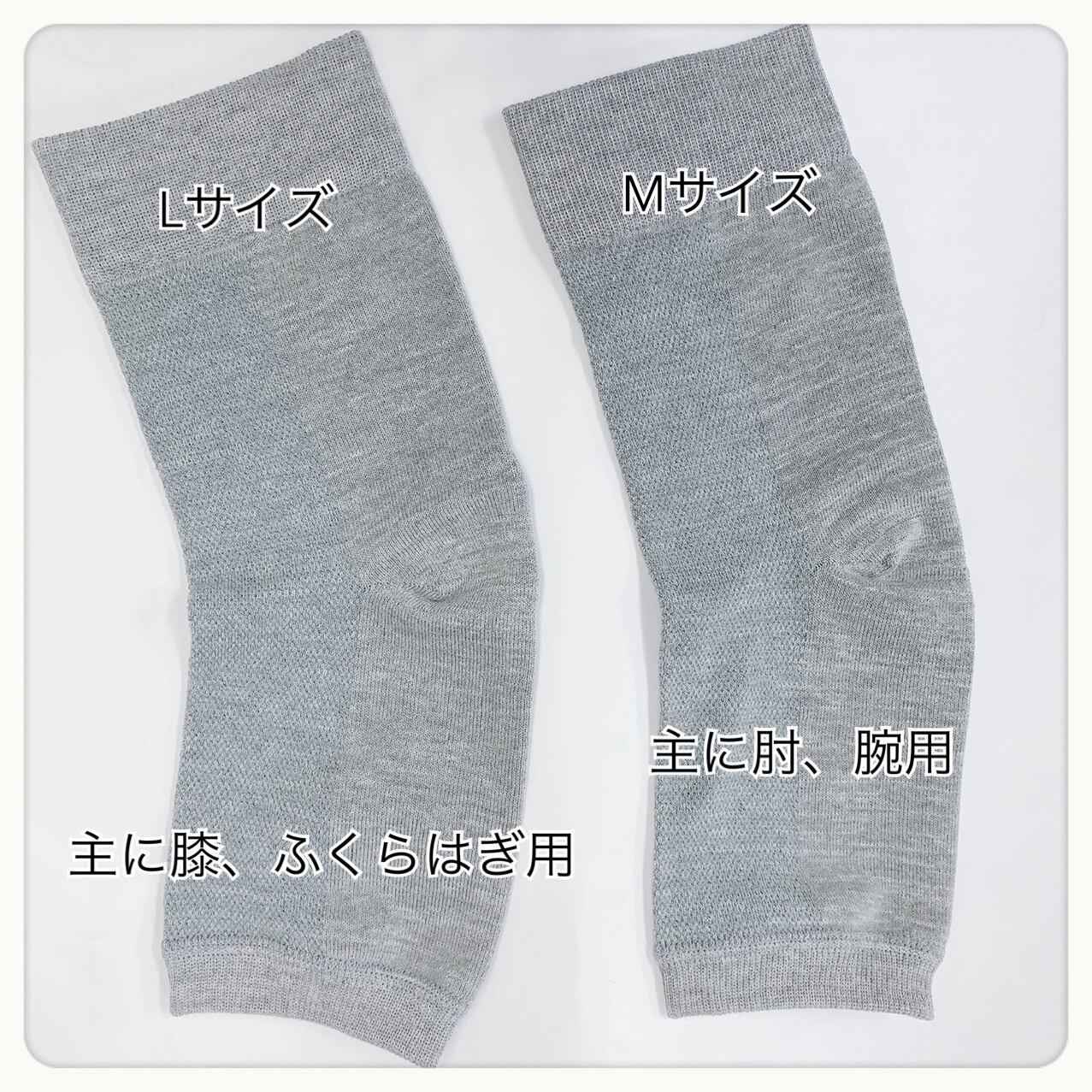 主に「肘と腕用」ですが、伸縮性がありますので適用範囲であれば膝、ふくらぎも着用可能です。緩めをご希望であればL(膝用)サイズをオススメします。