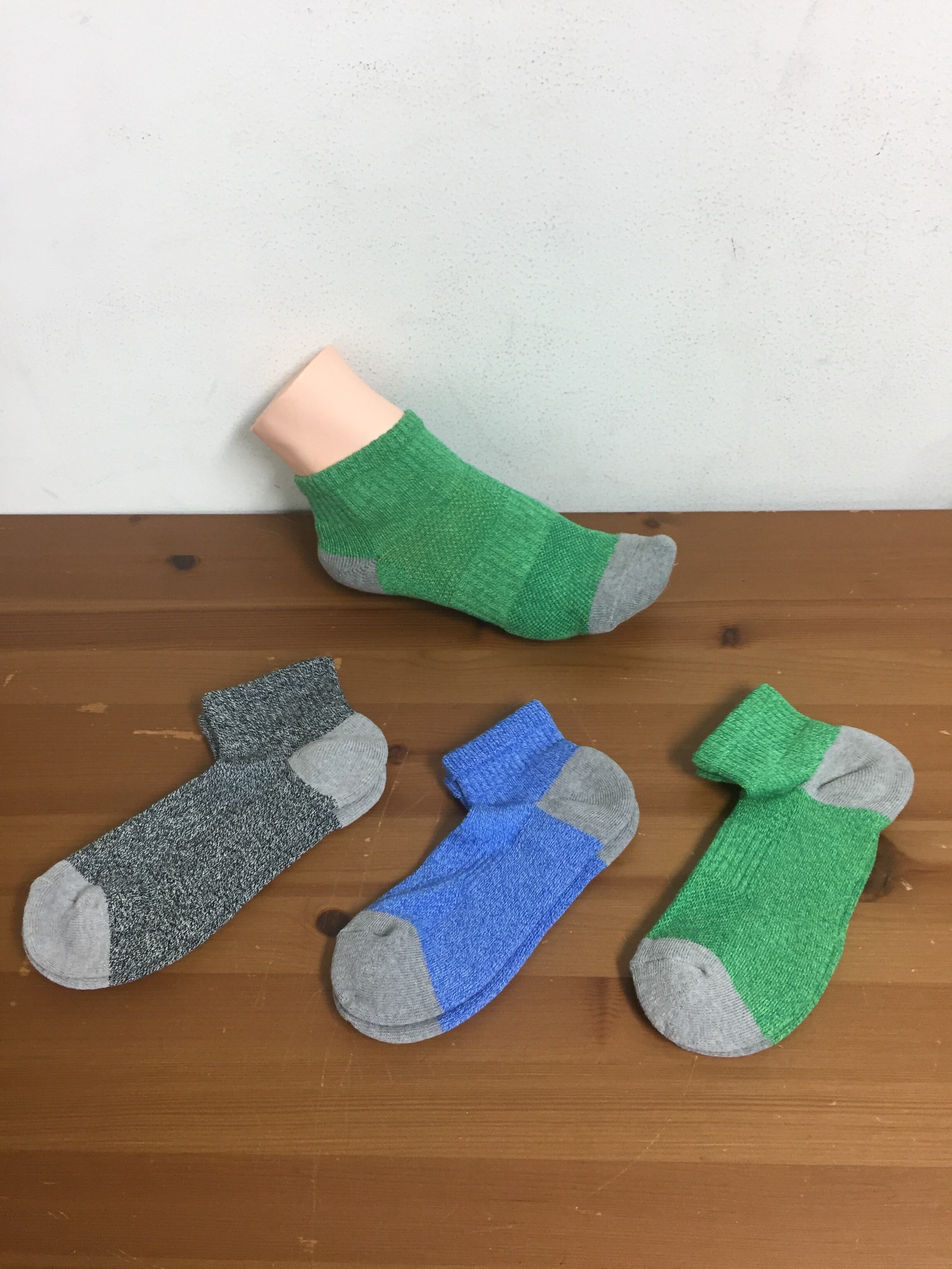 良質な超長綿を高温で燃焼させて出来た炭の糸を編み込んだつま先と色違いのカジュアルアンクルソックス。