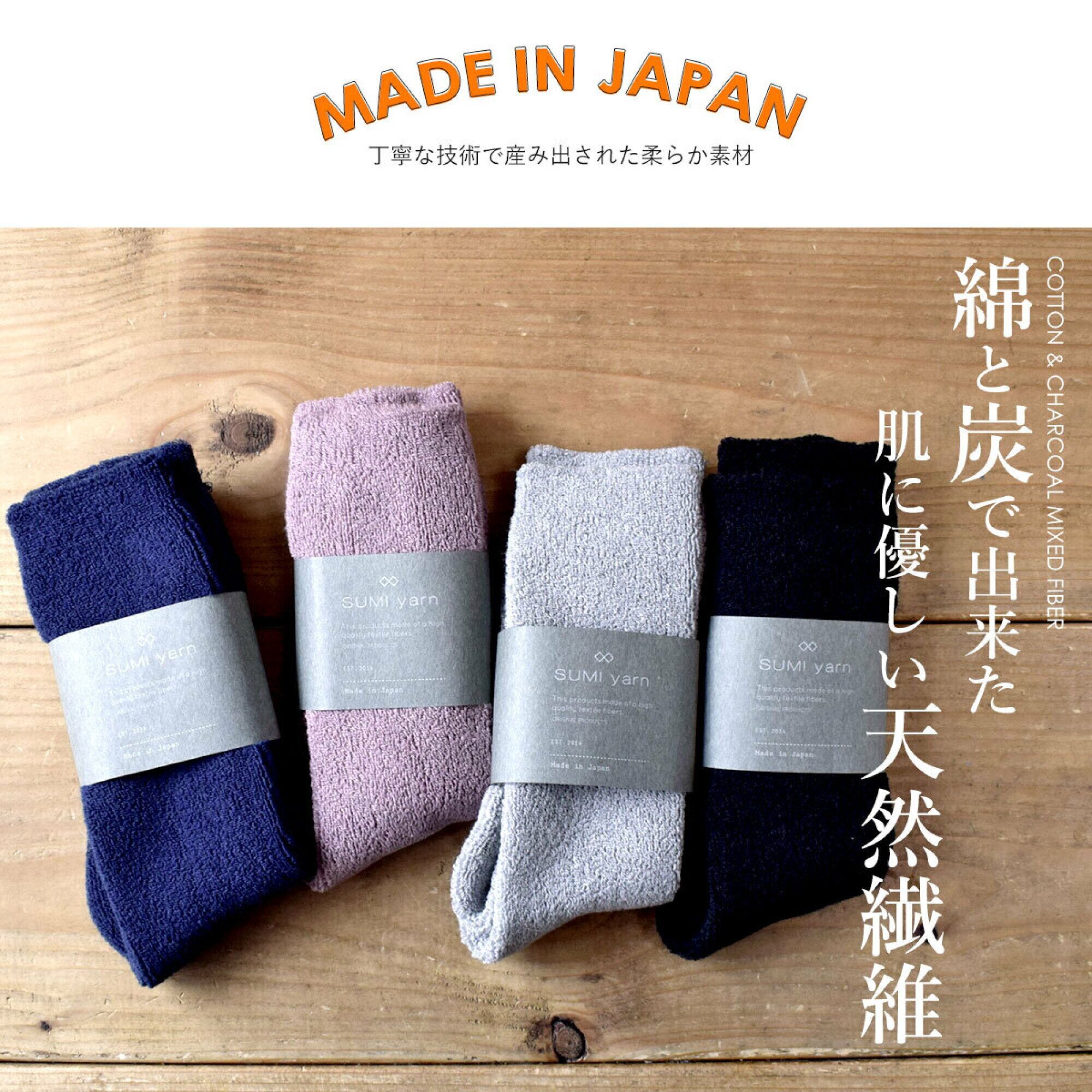 (リニューアル/炭のチカラ/足の臭い軽減や血流促進に)綿由来の天然炭素繊維を靴下の産地奈良県の工場で編んだパイル地モコモコソックス