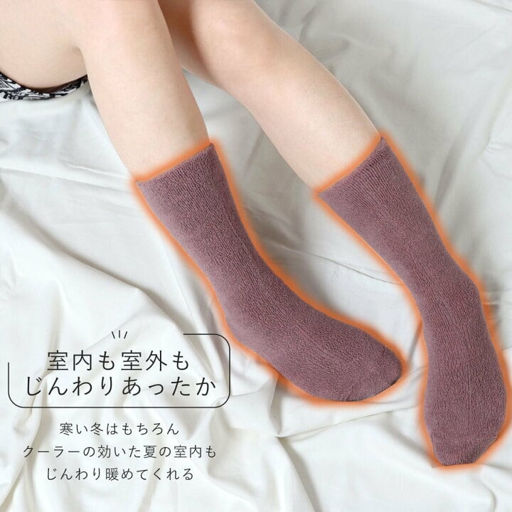 寒い冬の時期は、お手持ちの薄手の靴下を履いて頂き、さらに上からこのパイルソックスを着用頂き、重ね履きをされますと暖かさが増して冷えを防ぎます。足の体温調節を適度に保つ為に重ねばきをお勧め致します。