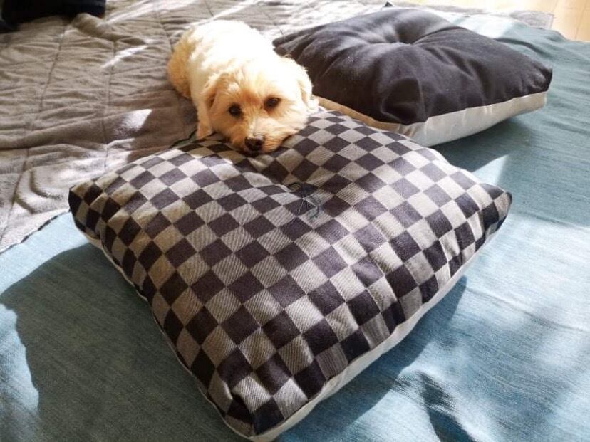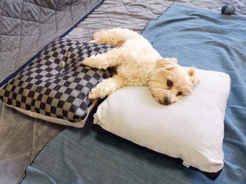 (炭のチカラで消臭)国産デニムジャカード織り/ペットと一緒に/炭ワタ入り清潔座布団クッション