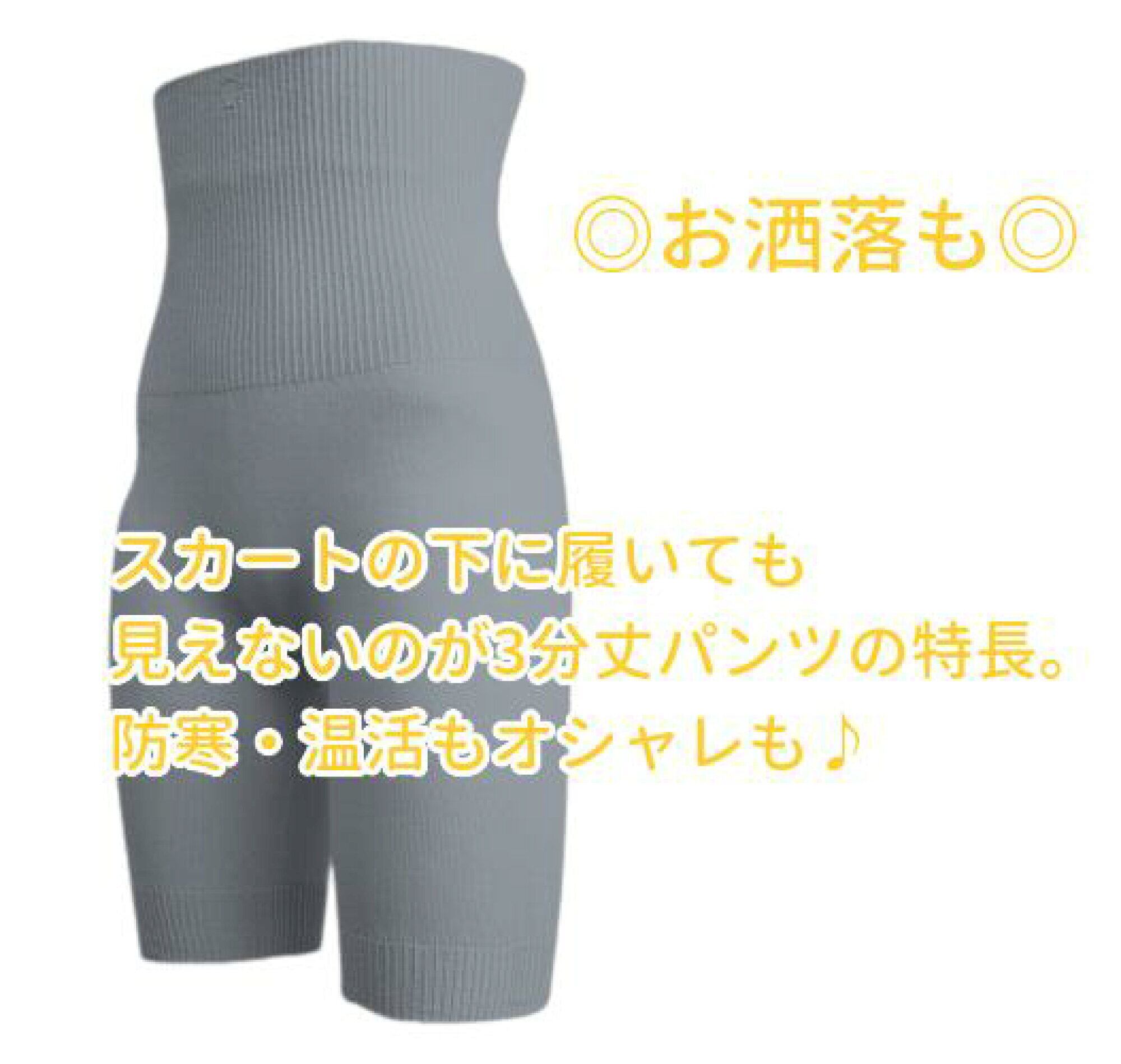 お腹から膝下まで温活。炭の効果 『 遠赤外線効果 』でじんわりと温める、腹巻き3分丈タイツ。
