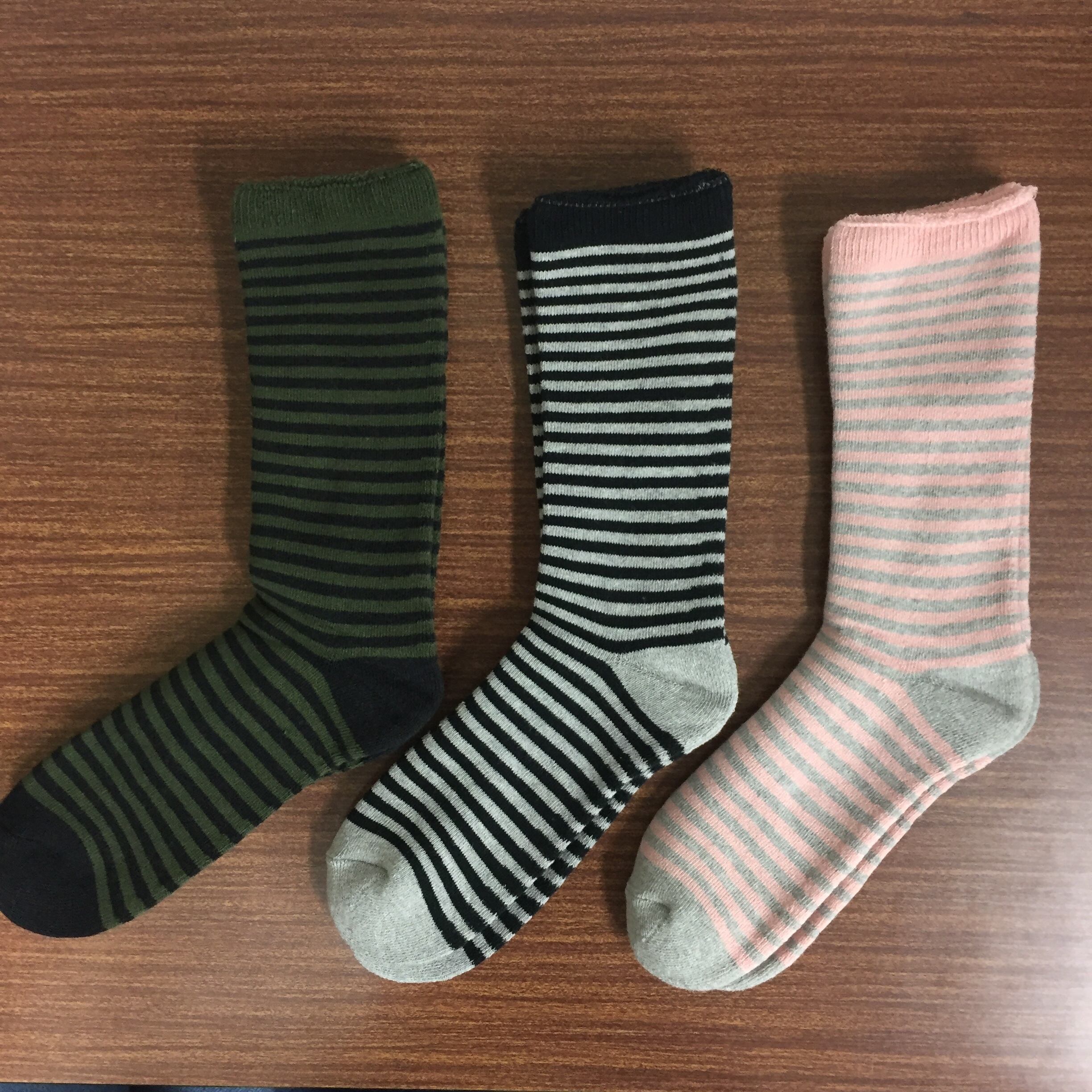 (送料無料/炭のチカラ/足の臭い軽減や血流促進に)綿由来の天然炭素繊維を靴下の産地奈良県の工場で編んだ裏パイル地細ボーダーソックス