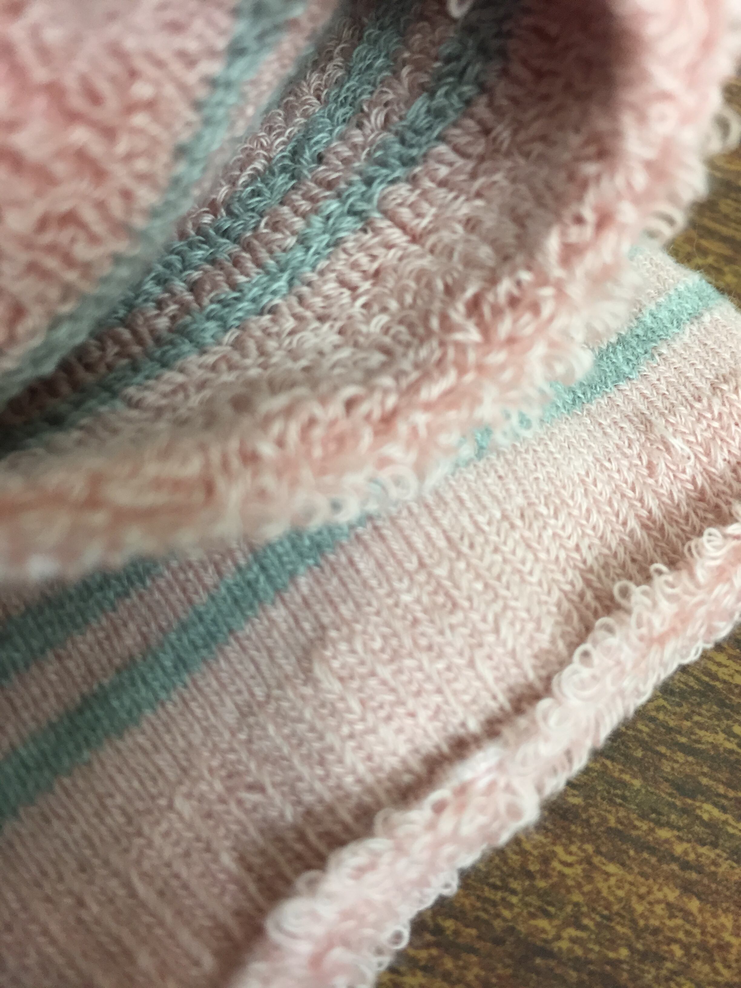 靴下の表は張りがある手触り、内側はパイル地特有のふわふわの肌触りです。