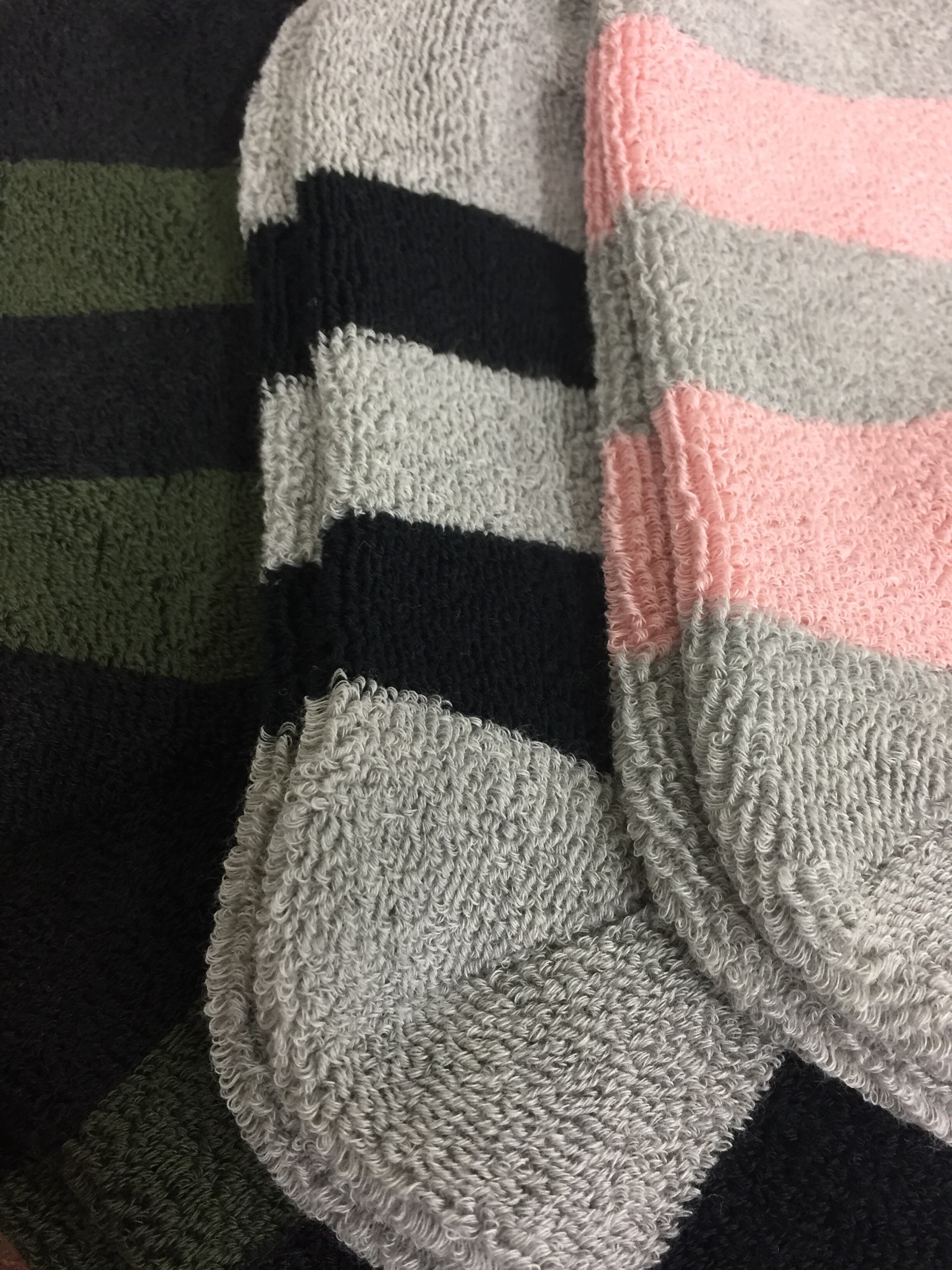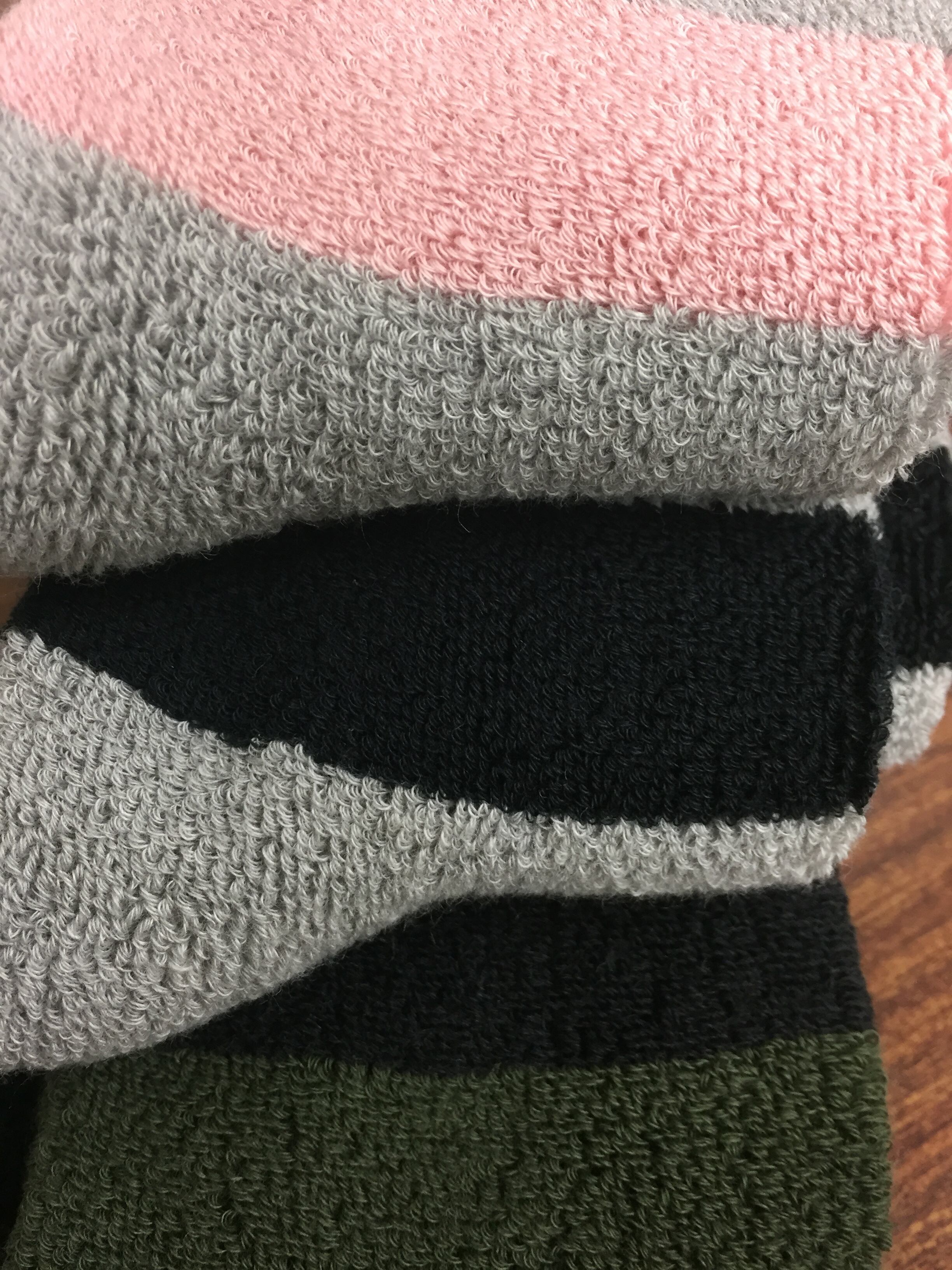 (送料無料/足の臭い軽減や血流促進に)綿由来の天然炭素繊維を靴下の産地奈良県の工場で編んだ表パイル地 太ボーダーソックス